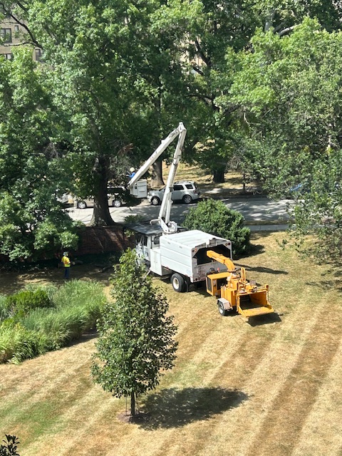 We sauntered down the walkways and around to the shady sidewalks, onto city streets…at a certain point, the pup finds a well-covered, nice patch of shade and sits. I stand, marveling at her cuteness, being present (which is highly challenging for this nervous system), when I hear a sound I do not recognize. The best way to describe it, based on my lived experience is this- pop corn popping, with your ear next to it, with your hearing aids turned up to the highest level AND a staple gun being played through a megaphone AND fire crackers breaking. That is what I heard…and immediately thought, “Must be construction in one of our buildings in the complex…”, but then I looked at my sweet butter ball pup, her face looking confused, the sound getting faster and louder, and this thought came into my head, “The woman this morning!” and I ran up the sidewalk…I got about 10 to 15 feet, when a massive branch from the tree we were under came crashing down.